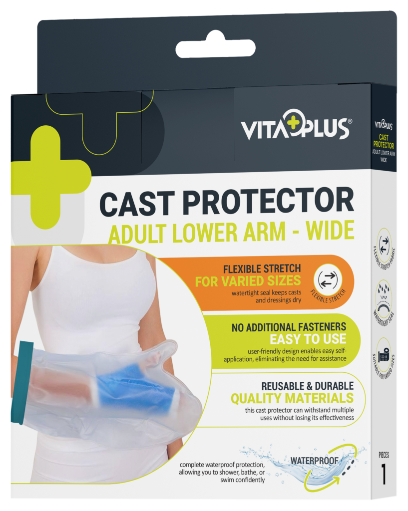 The VitaPlus Cast & Bandage Protector provides superior waterproof protection for casts, dressings, and bandages while offering enhanced comfort and convenience. Designed with an easy-to-use, flexible ring seal, the protector creates a secure, watertight barrier that keeps moisture out during bathing, showering, or swimming. The durable yet soft material ensures a secure fit without compromising comfort or mobility. Reusable and available in multiple sizes, the Cast & Bandage Protector is ideal for those recovering from injuries or surgeries, allowing users to maintain their daily routine with confidence and ease.