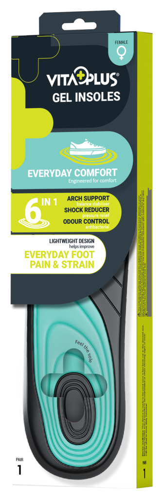 The VitaPlus Everyday Comfort Gel Insole is designed to provide superior support, cushioning, and freshness for all-day wear. Featuring advanced gel zones for enhanced shock absorption, reinforced arch support to alleviate discomfort from plantar fasciitis, and full-length pressure relief to evenly distribute weight, the everyday insole ensures maximum comfort and stability. The moisture-wicking and antibacterial properties maintain a dry, clean environment, while cutting guidelines allow for easy customisation to fit any shoe. Ideal for daily activities, the VitaPlus Everyday Comfort Gel Insole is the ultimate solution for improved foot health and enduring comfort.